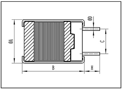 | A | B | C | D | H | mm | μH | |